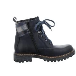 Stiefeletten haben im Herbst und Winter Hochsaison. Genieße diese schöne Zeit im Jahr mit unseren blauen Stiefeletten für Damen. Wir fertigen die Stiefelette für Dich aus einer strapazierfähigen Leder-Kombination. Die sportliche Schnürung gibt dem Fuß beim Gehen und Stehen viel Halt. Damit Deine Füße selbst an sehr kalten Tagen nicht kalt werden, ist diese Stiefelette mit weichem Textil warm gefüttert. Für trockene Füße bei jedem Wetter TopDryTex-Membran. Das Modell hat eine herausnehmbare Sohle zum Wechseln. Die AGO Fertigungsart garantiert Leichtigkeit und Passformstabilität. Mit der Weite G bietet unsere Stiefelette eine angenehme Weite am Fußballen. Geh Deinen Weg mit Marta 52.