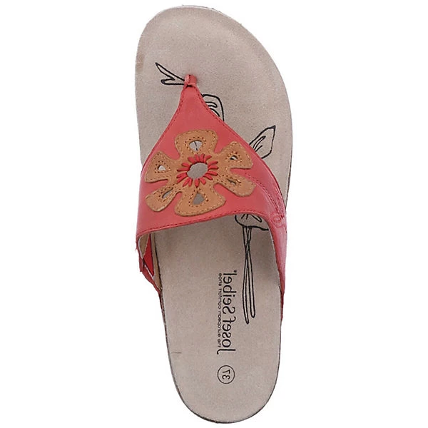 Der bequeme Damen-Zehentrenner der Marke Josef Seibel aus Leder wird von nun an Ihr ständiger Begleiter sein. Die Decksohle aus Rindsvelour ist hochwertig verarbeitet und bietet optimalen Komfort. Der Schuh verfügt über eine Weite G, ideal für den ganz normalen Fuß. Der Keilabsatz hat eine Absatzhöhe von 4 cm. Die stabile Laufsohle ist aus Gummi/Kork, diese Sohle ist robust, stabil und strapazierfähig. Die offene Schuhspitze macht den Schuh elegant am Fuß. Der Schuh ist perfekt geeignet fürs ganztägige Tragen, da Tragegefühl, Komfort und Verarbeitung so ausgerichtet sind, dass Sie den Schuh den ganzen Tag über ohne Probleme tragen können.