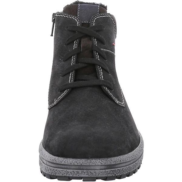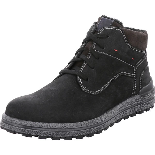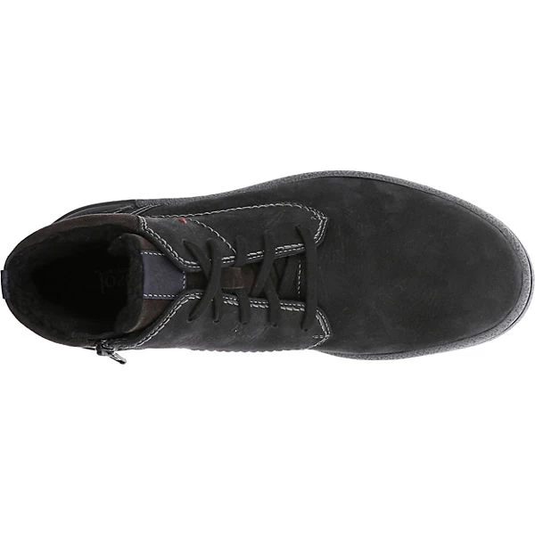 Josef Seibel Herren Boots EMIL 25 Schwarz Rauleder Ziernähte Logoprägung Reißverschluss und Schnürung