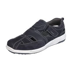 Im Frühling und Sommer begleitet Dich diese Herren-Sandale Enrico 21. Der Klettverschluss bietet einen guten Halt und einen leichten Einstieg in den Schuh. Diese Sandale wird von uns aus langlebigem Nubuk-Leder produziert. Mit der Weite G ist die Sandale Enrico 21 sehr bequem für normale Füße. Wo auch immer Du hingehst, dieses alltagstaugliche Modell Enrico 21 begleitet Dich durch dick und dünn.