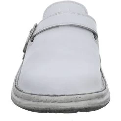 Der bequeme Herren-Clog der Marke JOSEF SEIBEL aus Leder wird von nun an Ihr ständiger Begleiter sein. Die Decksohle aus Leder ist hochwertig verarbeitet und bietet optimalen Komfort. Der Schuh verfügt über eine Weite G, ideal für den ganz normalen Fuß. Der flache Absatz hat eine Absatzhöhe von 1,5 cm. Die stabile Laufsohle ist aus PU, diese Sohle ist leicht, weich, flexibel und biegsam. Die geschlossene Schuhspitze macht den Schuh elegant am Fuß. Der Schuh ist perfekt geeignet fürs ganztägige Tragen, da Tragegefühl, Komfort und Verarbeitung so ausgerichtet sind, dass Sie den Schuh den ganzen Tag über ohne Probleme tragen können.