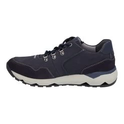 Im Herbst und Winter wirst Du Dich in diesen blauen Herren-Sneaker aus Leder verlieben. Dieser Sneaker wird von uns aus einer langlebigen Leder-Kombination produziert. Die komfortable Schnürung gibt dem Fuß viel Halt. Die herausnehmbare Sohle kannst Du einfach wechseln. Die für Sneaker typische Fertigungsart Strobel macht den Schuh besonders langlebig. Mit der Weite G ist der Sneaker Jeremiah 06 ideal geeignet. Genieße Deine Freizeit mit Leichtigkeit an den Füßen!