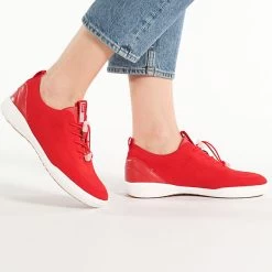 Das außergewöhnliche Design des gestrickten Obermaterials wird durch unterschiedliche Strickarten aufgelockert und abgerundet und durch Overlays aus Glattleder abgerundet. Es ist besonders flexibel und geht in eine Schnellschnürung über. Dadurch kannst du leicht in diesen Schuh schlüpfen und sofort loslaufen. Durch die gestrickten Maschen ist der Sina 65 besonders atmungsaktiv. Mit der herausnehmbaren Innensohle mit leichter Polsterung hast du angenehmen Komfort für den ganzen Tag. Dank der rutschhemmenden Außensohle ist guter Halt garantiert.