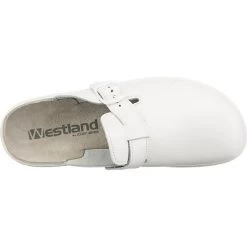 Für ein tolles Laufgefühl: Die Komfort-Pantoletten von der Marke Westland by JOSEF SEIBEL. Für einen angenehmen Halt am Fuß sorgt der Riemenverschluss, der eine ideale Regulierung der Weite garantiert. Das Obermaterial des Schuhs ist aus strapazierfähigem Kunstleder.